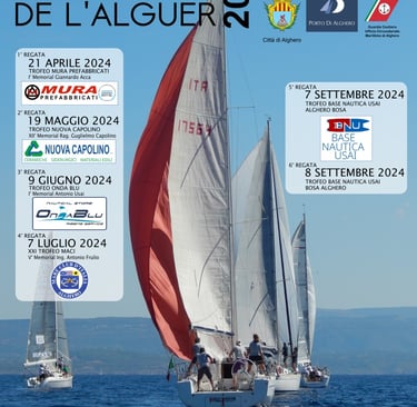 Quest'anno, le prime quattro regate avranno luogo da aprile a luglio nella suggestiva rada di Alghero, mentre a settembre si concluderà con le emozionanti prove della tradizionale regata Alghero-Bosa-Alghero, coincidente con i festeggiamenti in onore della Madonna di Regnos Altos a Bosa. Tra le imbarcazioni partecipanti figurano le Stazzate O.R.C., la classe J24 monotipi e le Derive Classe SNIPE - ILCA.