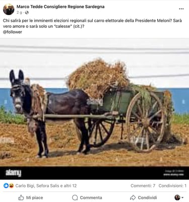 Il riferimento è esplicito all'attuale Sindaco di Alghero, Mario Conoci, fotografato alla recente manifestazione Pro Truzzu a Quartu Sant'Elena. Tedde, con una caduta di stile non trascurabile per una figura di tale calibro istituzionale, sembra preannunciare una campagna elettorale ombreggiata da attacchi personali e scarsa sostanza.
