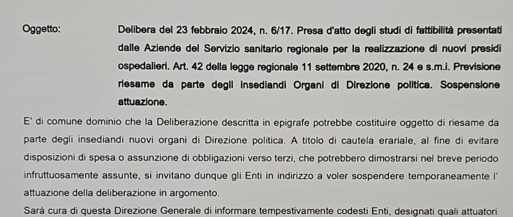 Quale impatto può avere la sospensione dei nuovi ospedali sulla qualità dell'assistenza sanitaria in Sardegna?