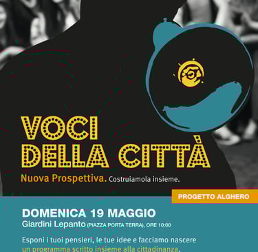 La coalizione "Progetto Alghero" (Campo largo e forze civiche centriste), che sostiene Raimondo Cacciotto come candidato sindaco, lancia l'iniziativa "Voci della Città". L'evento si terrà domenica 19 maggio ai Giardini La Lepanto-Cecchini ad Alghero, dalle 10 alle 18, e invita tutti i cittadini a partecipare attivamente alla stesura del programma di mandato per i prossimi cinque anni.